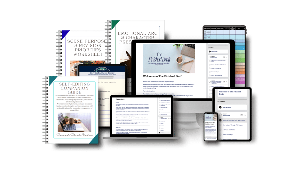 The Finished Draft is an editor-approved self-editing framework that teaches you how to evaluate your novel the way a professional editor would—so you can revise with clarity, confidence, and progress.
